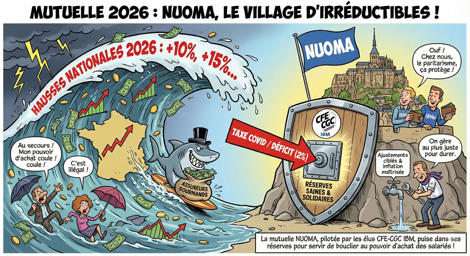 Dans un contexte national marqué par l'envolée des tarifs des complémentaires santé, votre mutuelle d'entreprise NUOMA tire son épingle du jeu grâce à une gestion saine et solidaire. Vos élus CFE-CGC IBM font le point sur la situation pour l'année 2026.